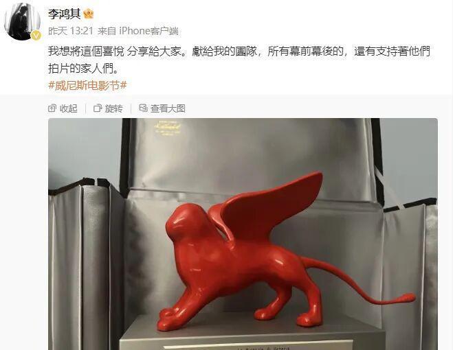 唯一可以被搬上台面说的是,2023 年 9 月,由李鸿其执导的电影《爱是一把枪》在威尼斯电影节获得了“未来之狮”最佳导演首作奖,算是给了行业一点小小的震撼。