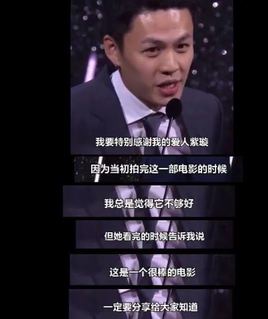 “要特别感谢我的爱人紫璇,当初拍完这部电影的时候,我总觉得它不够好,但她看完后告诉我,这是一个很棒的电影,你要给大家知道。”